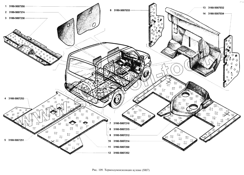 Каталог запасных частей к технике: УАЗ-3160. Термошумоизоляция кузова