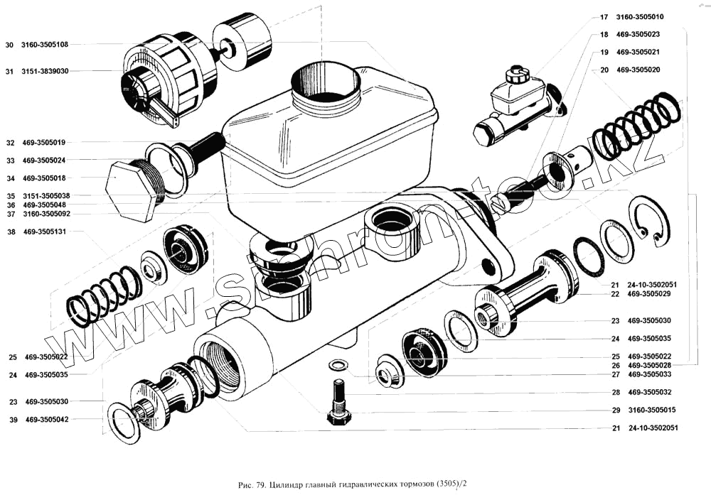 Каталог запасных частей к технике: УАЗ-3160. Цилиндр главный гидравлических тормозов