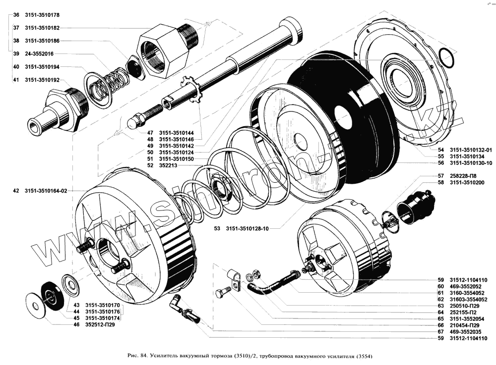 Каталог запасных частей к технике: УАЗ-3160. Усилитель вакуумный тормоза, трубопровод вакуумного усилителя
