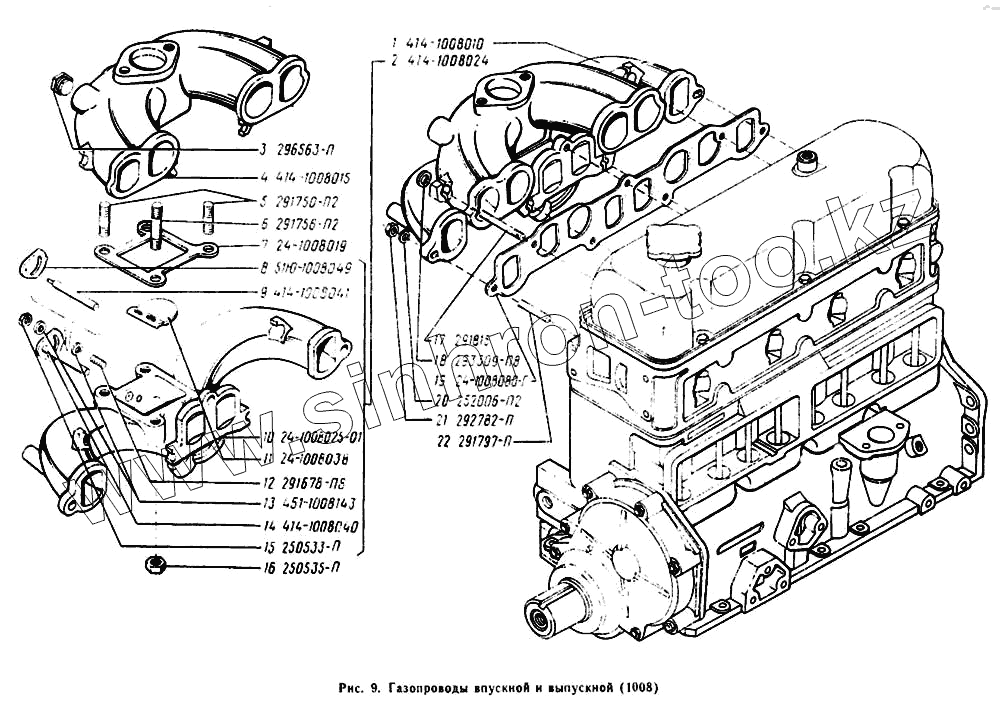 Каталог запасных частей к технике: УАЗ-3303. Газопроводы впускной и выпускной