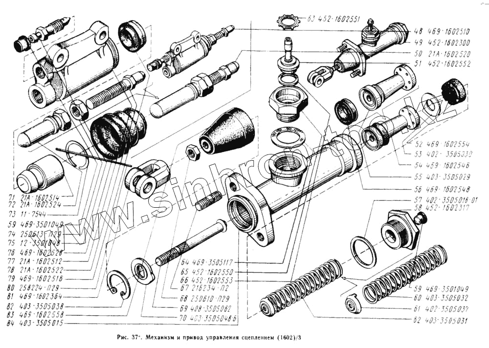 Каталог запасных частей к технике: УАЗ-3303. Механизм и привод управления сцеплением