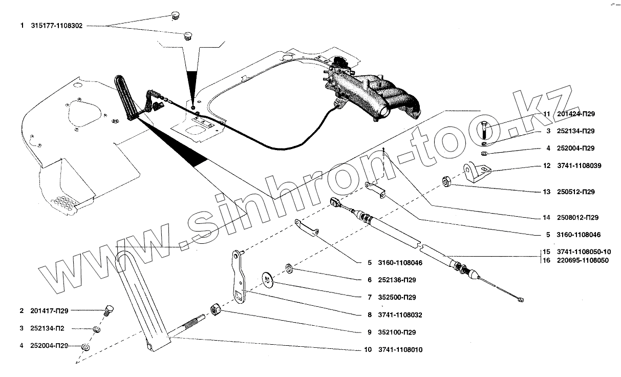 Каталог запасных частей к технике: УАЗ-37419. Акселератор (управление подачей топлива)