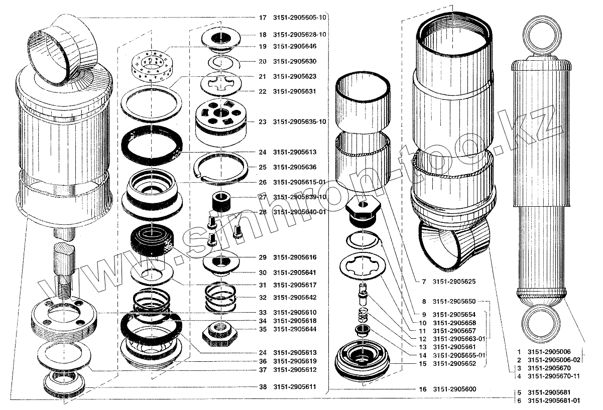 Каталог запасных частей к технике: УАЗ-37419. Амортизаторы передние