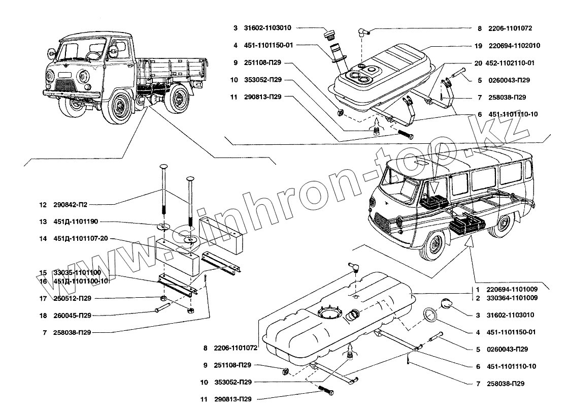Каталог запасных частей к технике: УАЗ-37419. Бак топливный