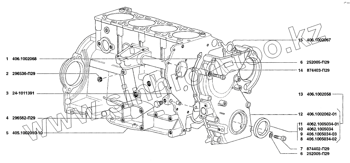 Каталог запасных частей к технике: УАЗ-37419. Блок цилиндров двигателя