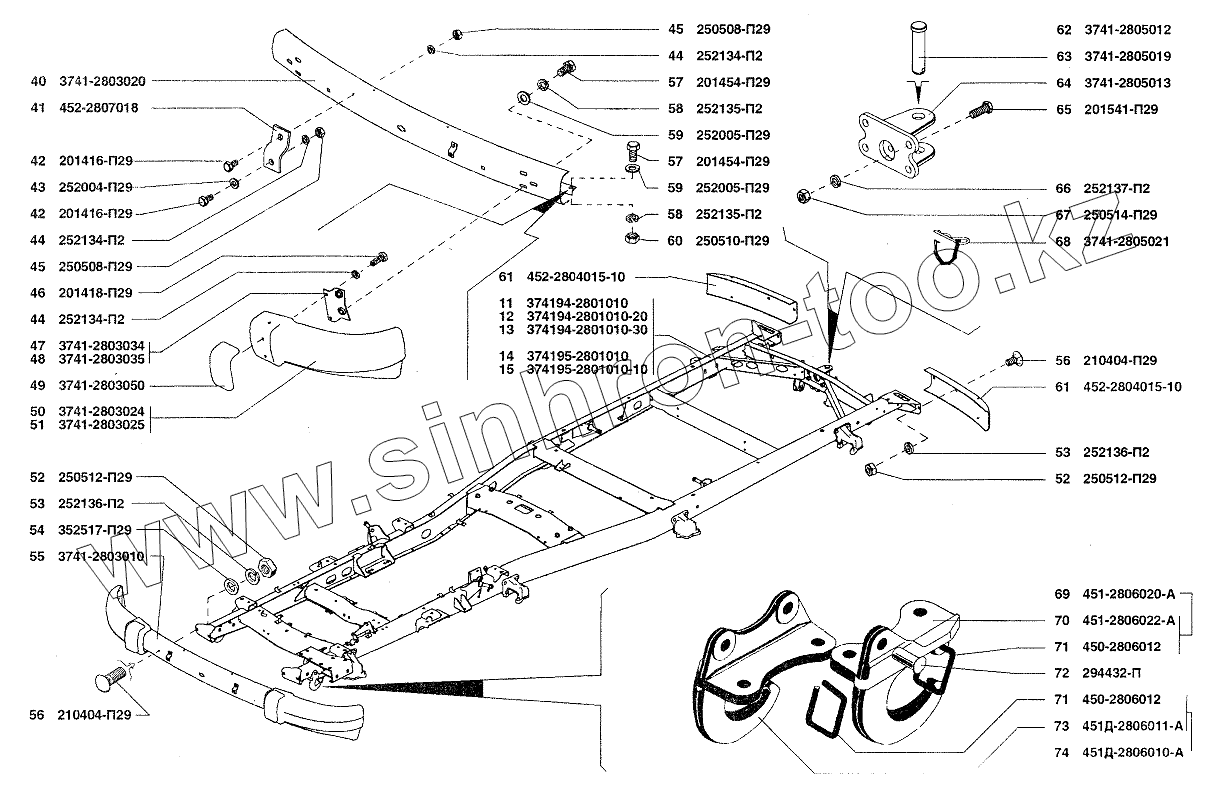Каталог запасных частей к технике: УАЗ-37419. Буфер передний, буфер задний