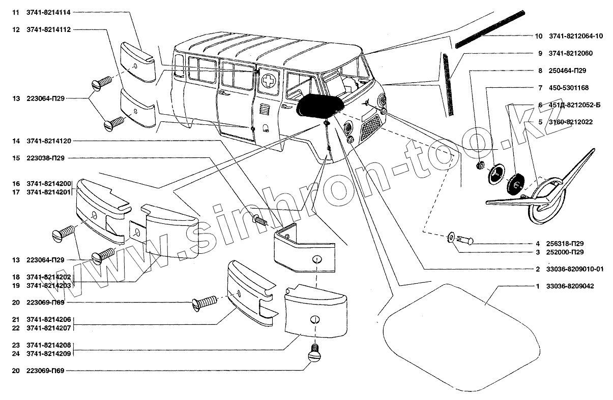 Каталог запасных частей к технике: УАЗ-37419. Чехлы, орнаменты и надписи