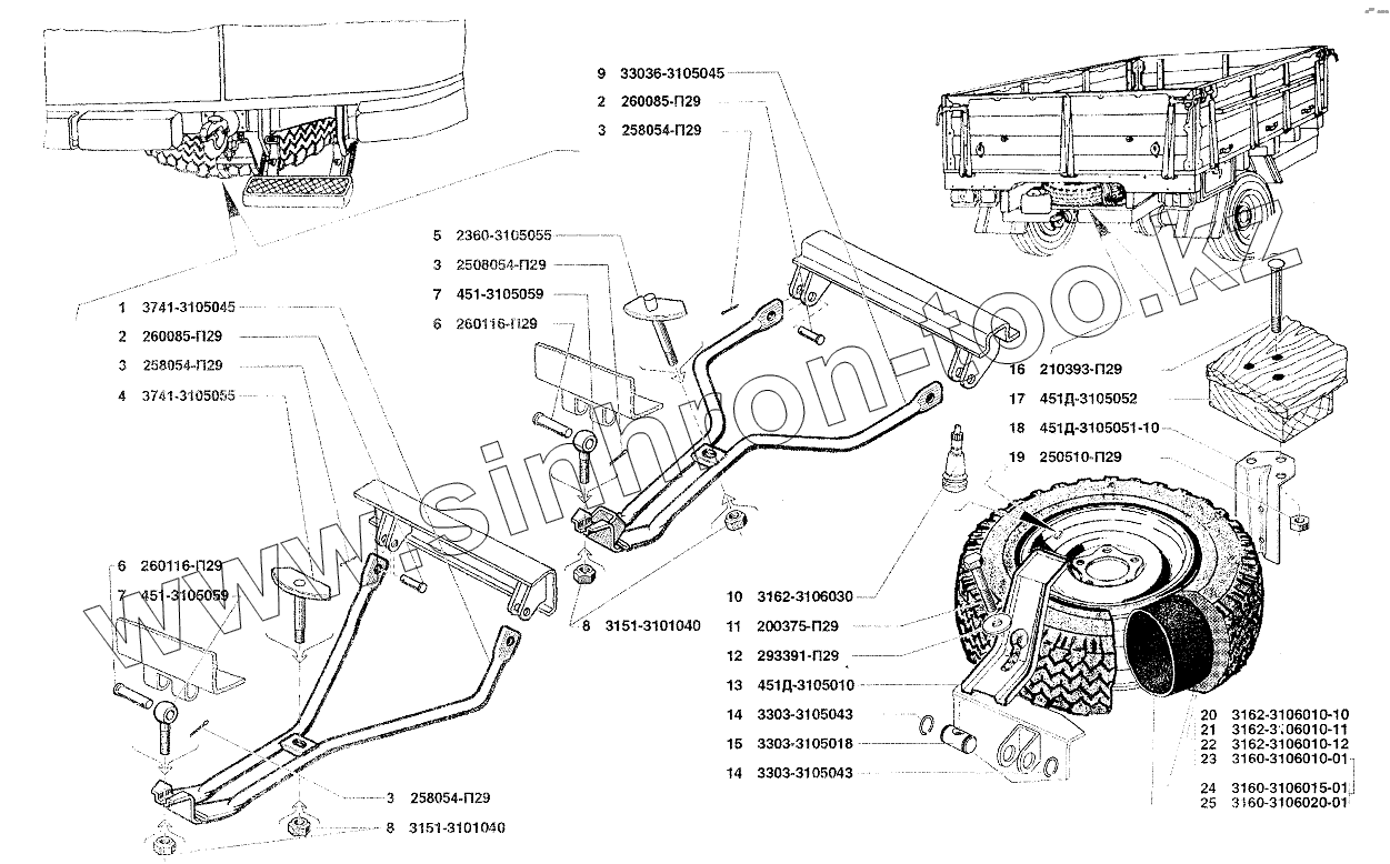 Каталог запасных частей к технике: УАЗ-37419. Держатель запасного колеса