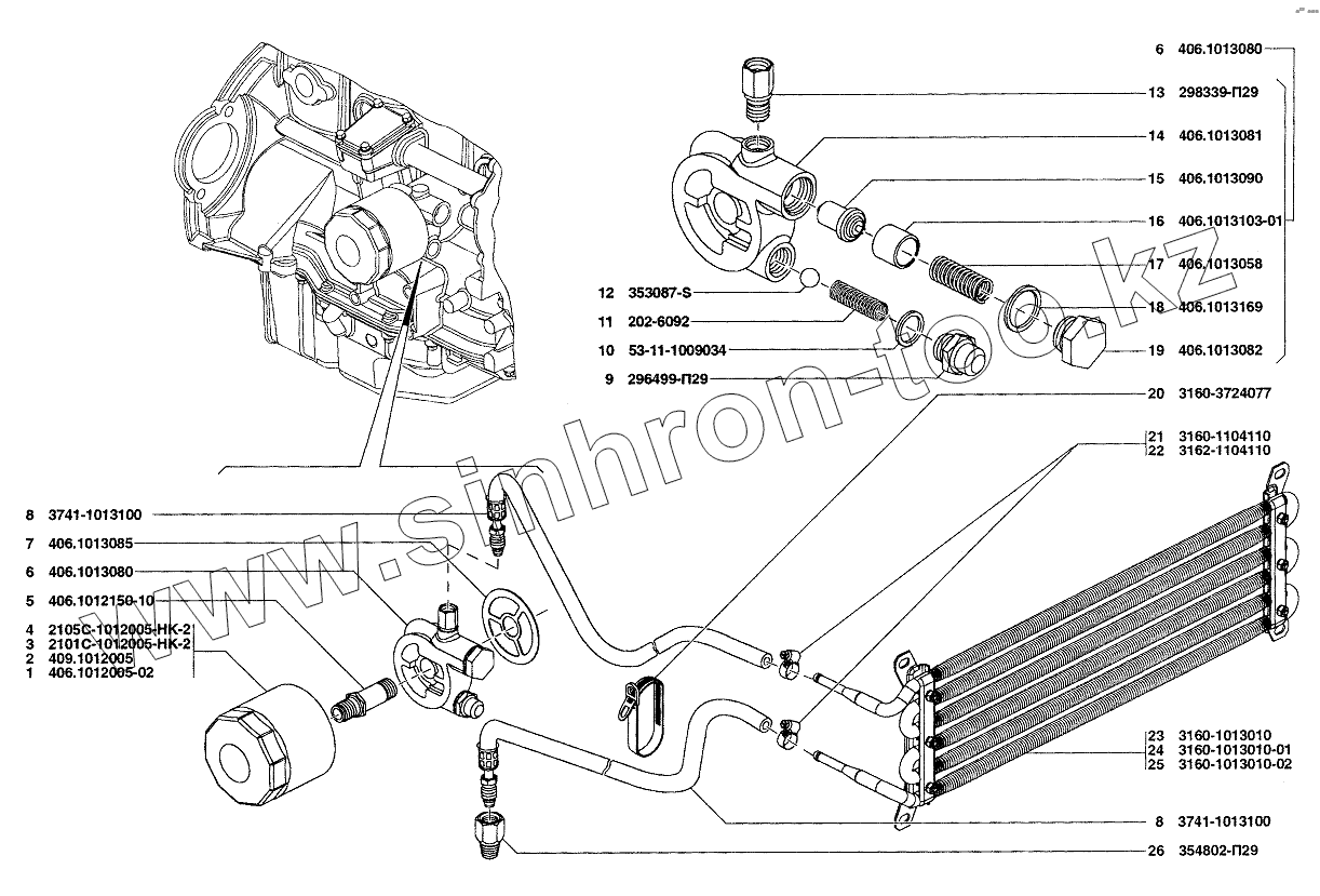Каталог запасных частей к технике: УАЗ-37419. Фильтр очистки масла и радиатор масляный