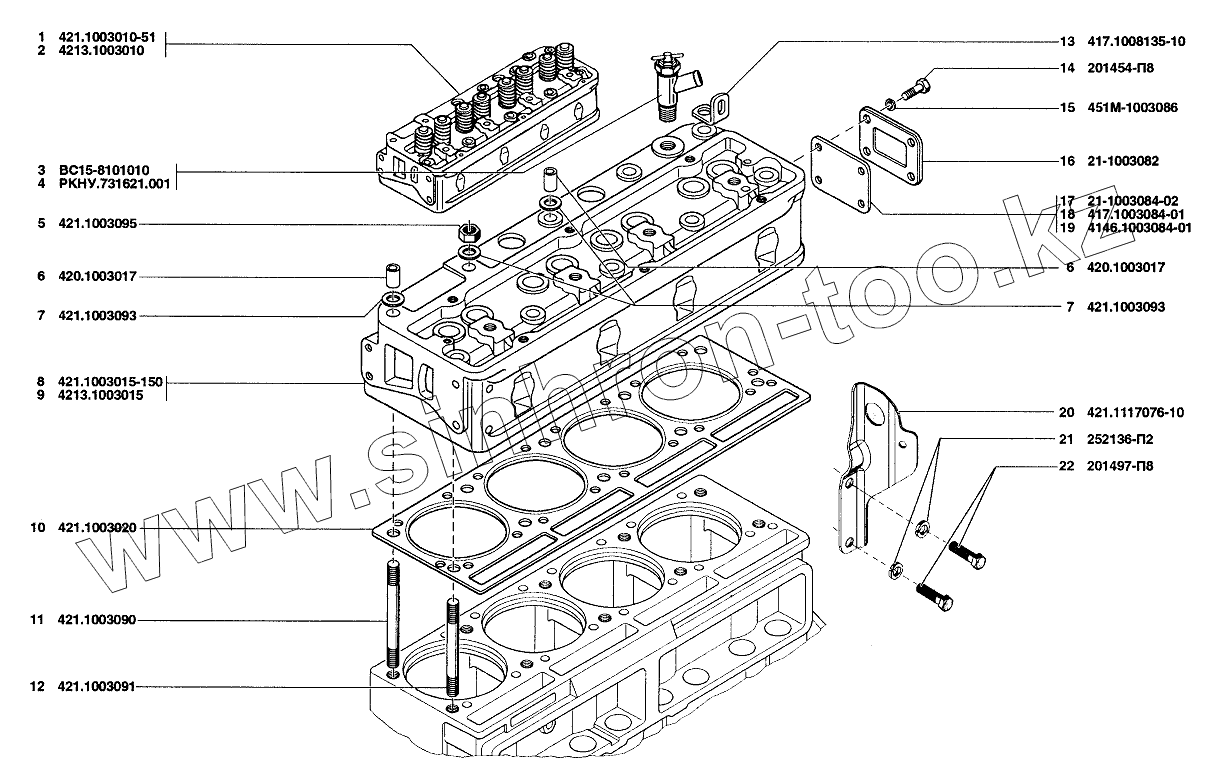 Каталог запасных частей к технике: УАЗ-37419. Головка цилиндров двигателя