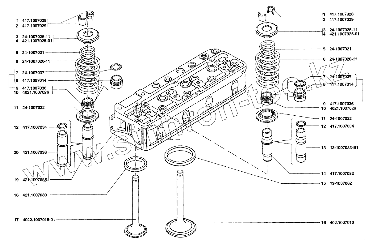 Каталог запасных частей к технике: УАЗ-37419. Клапаны и толкатели клапанов
