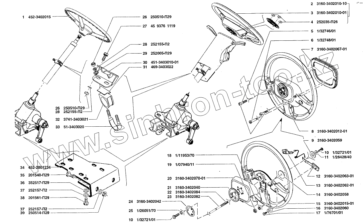 Каталог запасных частей к технике: УАЗ-37419. Колесо рулевого управления