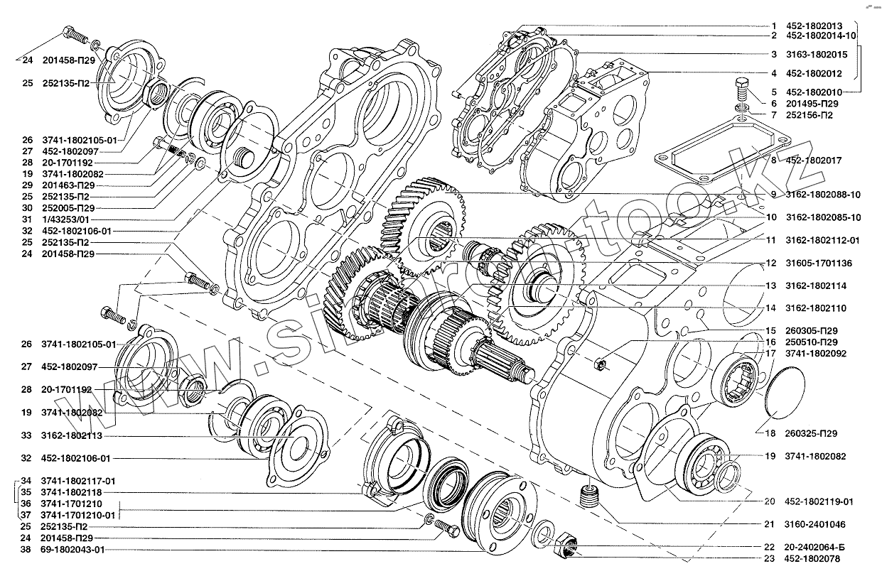 Каталог запасных частей к технике: УАЗ-37419. Коробка раздаточная