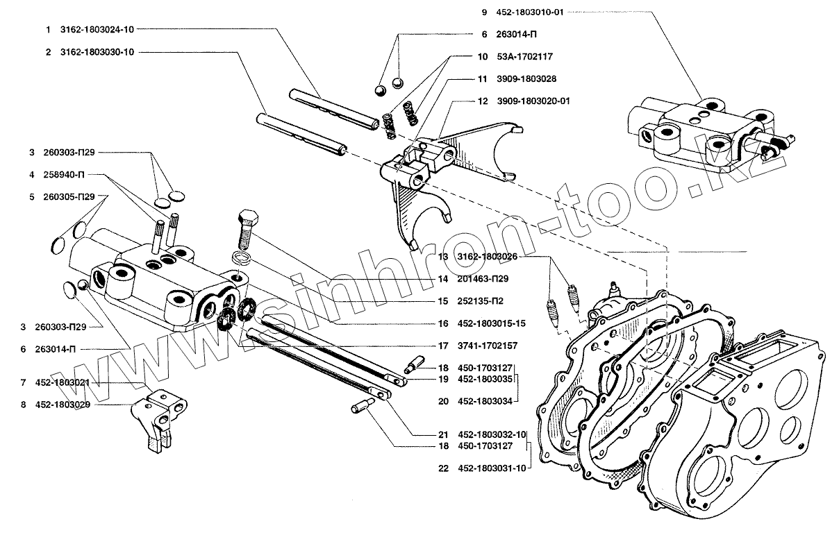 Каталог запасных частей к технике: УАЗ-37419. Механизм переключения передач