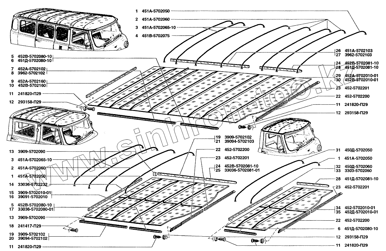 Каталог запасных частей к технике: УАЗ-37419. Обивка крыши
