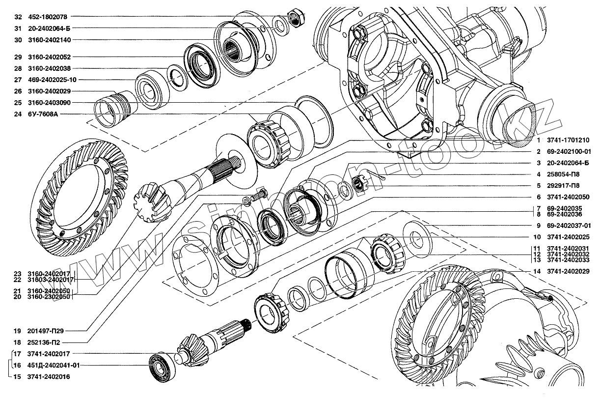 Каталог запасных частей к технике: УАЗ-37419. Передача главная переднего и заднего мостов