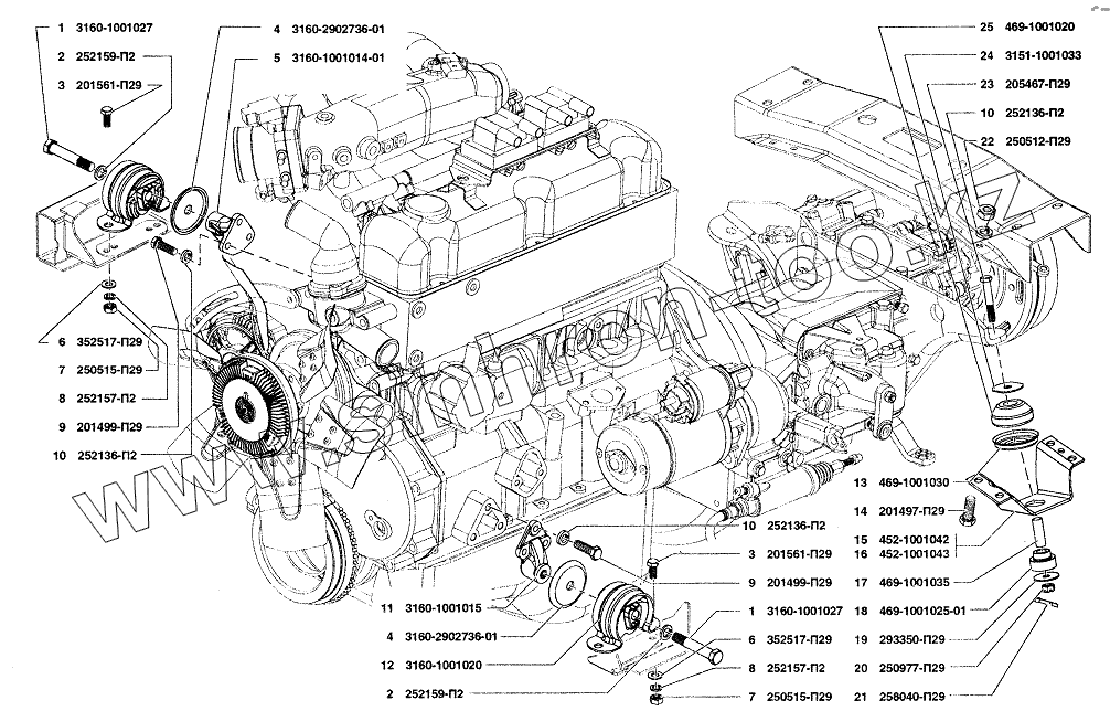 Каталог запасных частей к технике: УАЗ-37419. Подвеска двигателя