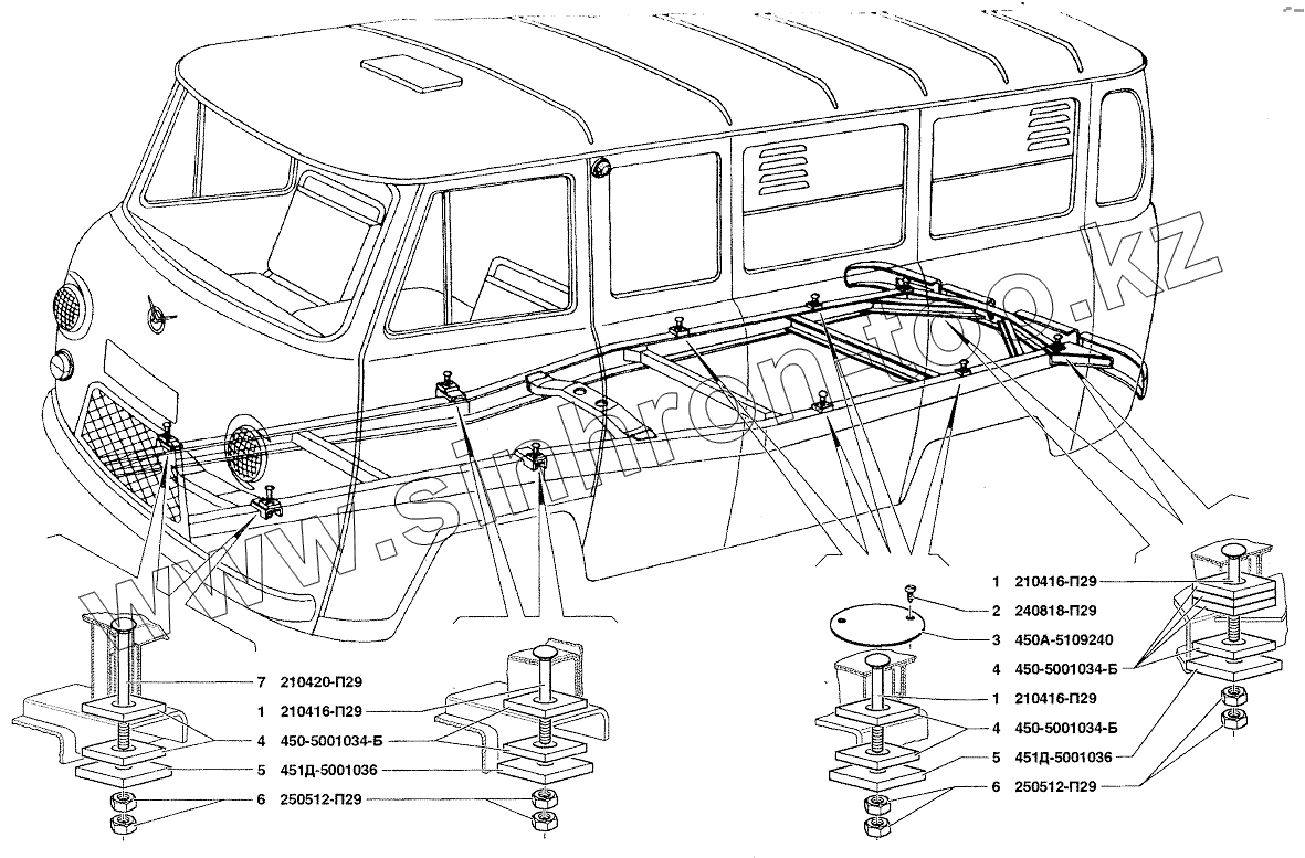 Каталог запасных частей к технике: УАЗ-37419. Подвеска кузова и кабины