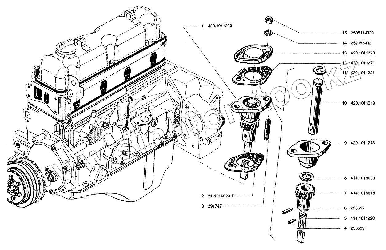Каталог запасных частей к технике: УАЗ-37419. Привод распределителя зажигания и масляного насоса