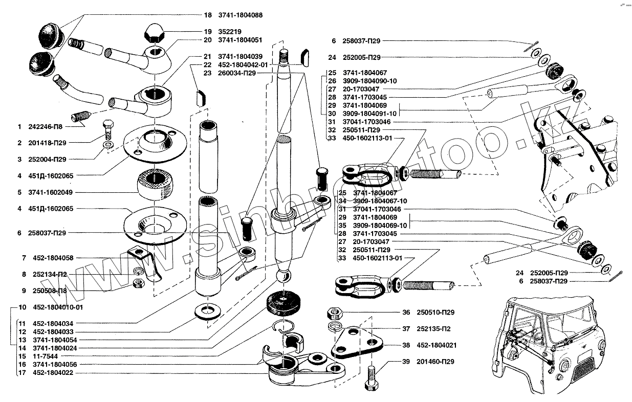Каталог запасных частей к технике: УАЗ-37419. Привод управления механизмом переключения передач