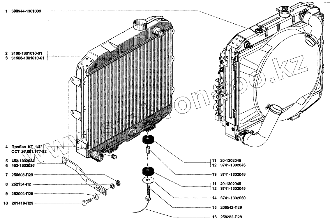 Каталог запасных частей к технике: УАЗ-37419. Радиатор, подвеска радиатора