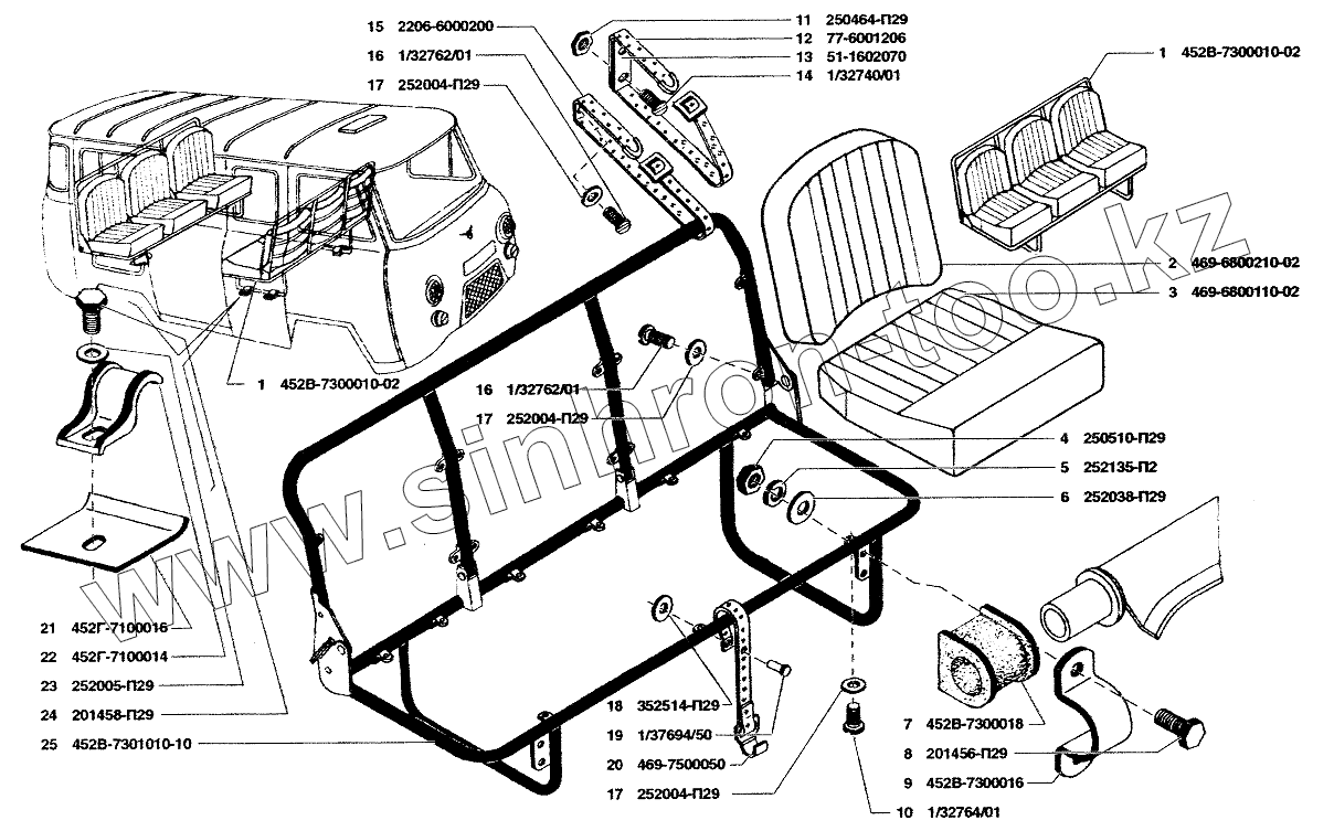 Каталог запасных частей к технике: УАЗ-37419. Сиденье трехместное в сборе