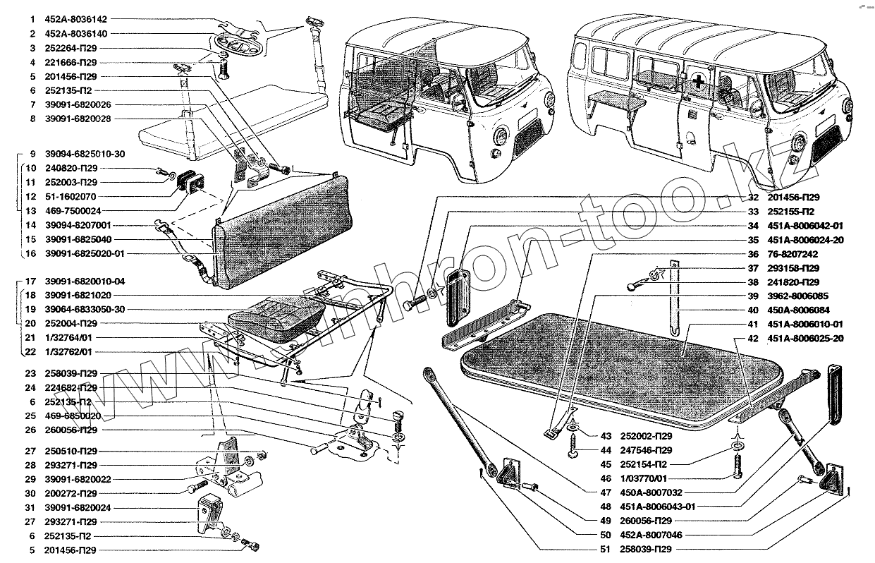 Каталог запасных частей к технике: УАЗ-37419. Сиденье заднее и сиденье откидное