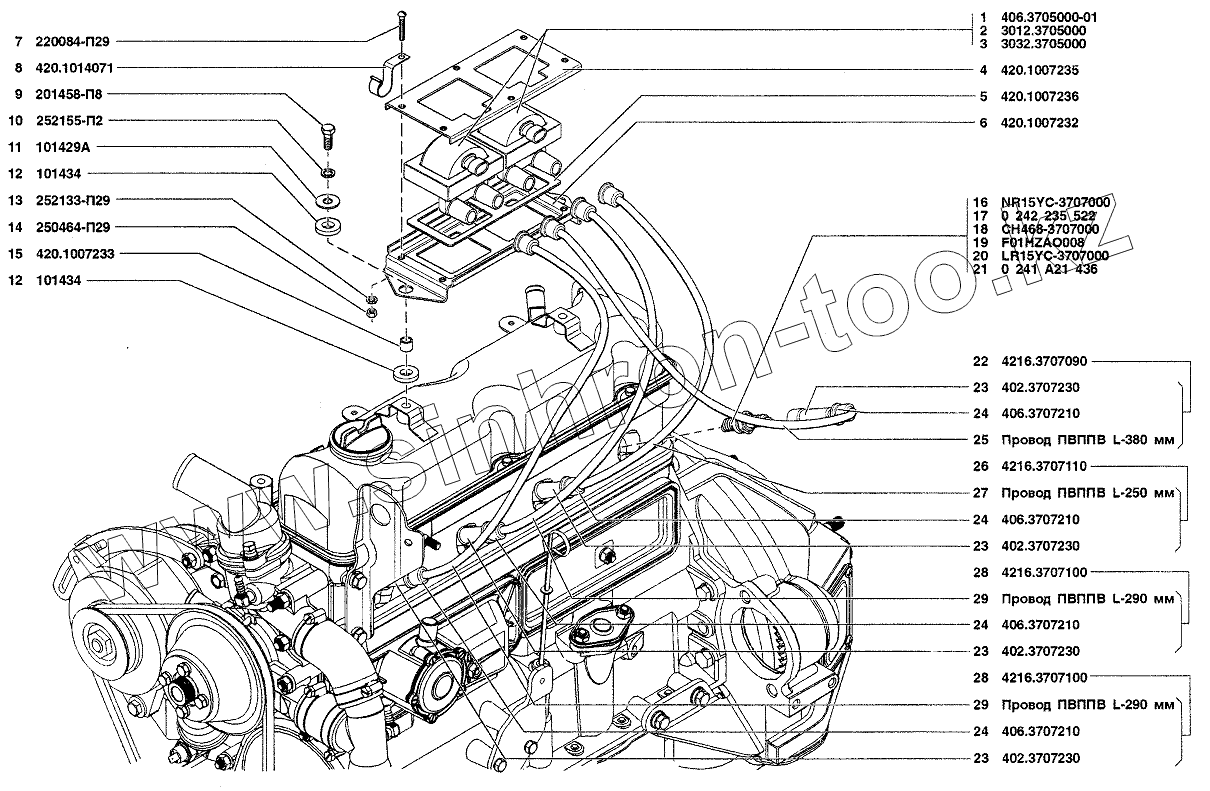 Каталог запасных частей к технике: УАЗ-37419. Свечи и провода зажигания