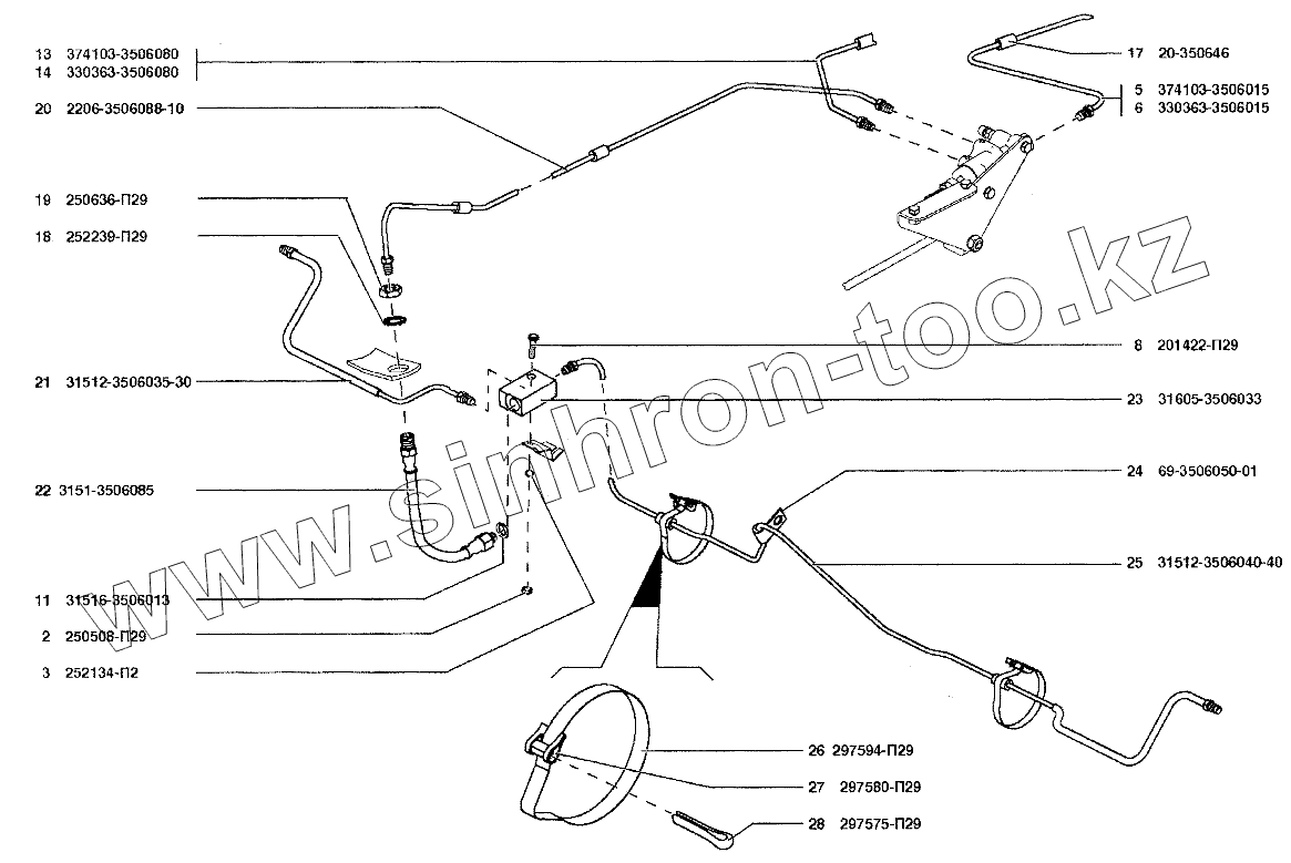 Каталог запасных частей к технике: УАЗ-37419. Трубопроводы