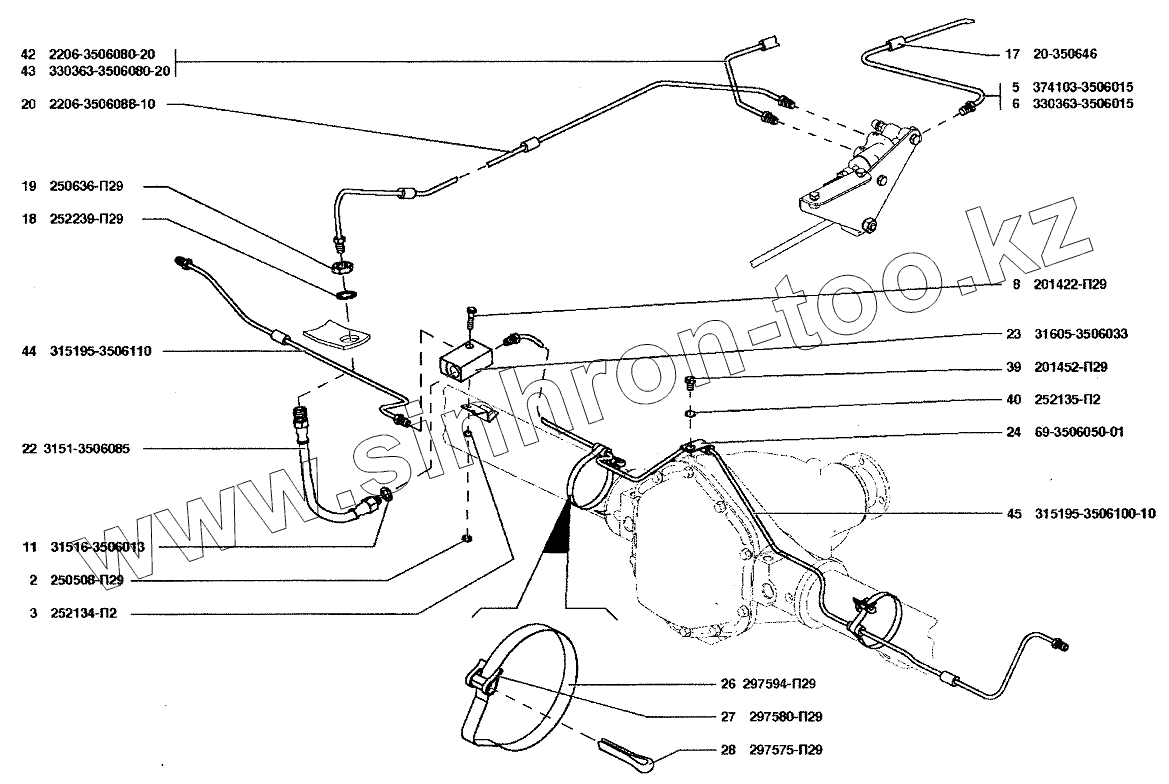 Каталог запасных частей к технике: УАЗ-37419. Трубопроводы