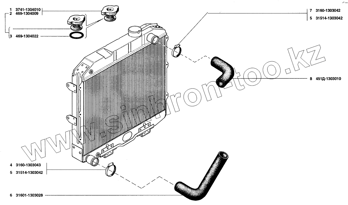 Каталог запасных частей к технике: УАЗ-37419. Трубопроводы и шланги, пробка радиатора