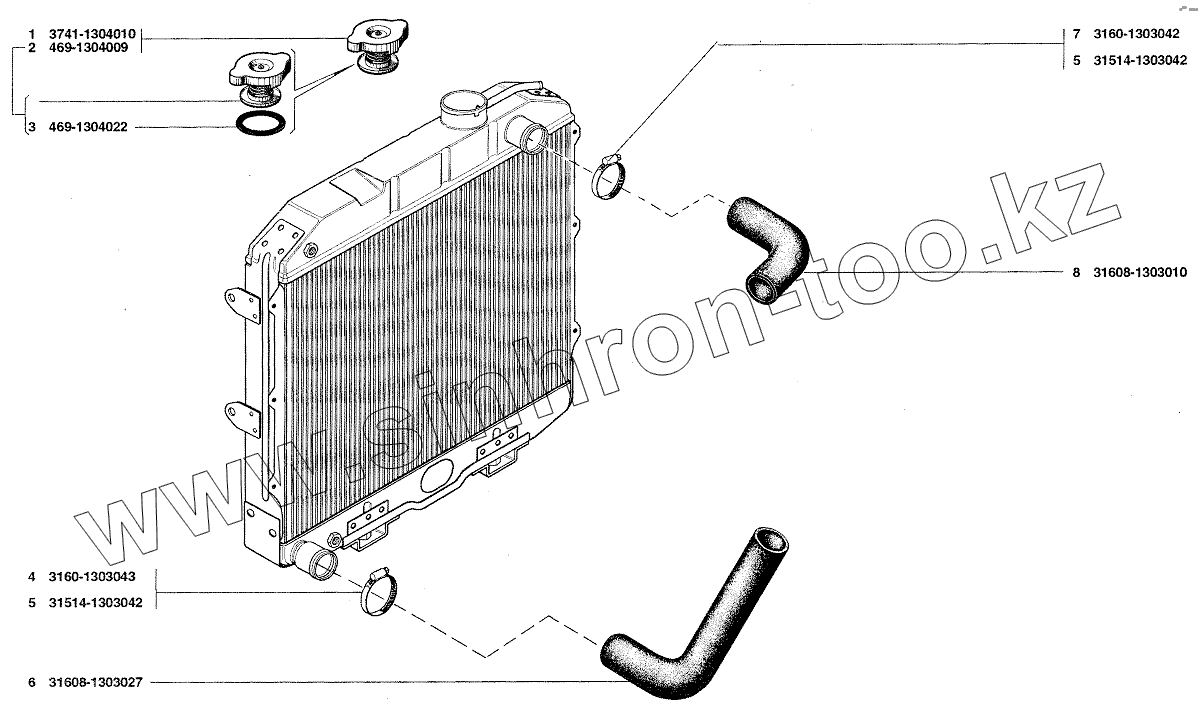 Каталог запасных частей к технике: УАЗ-37419. Трубопроводы и шланги, пробка радиатора