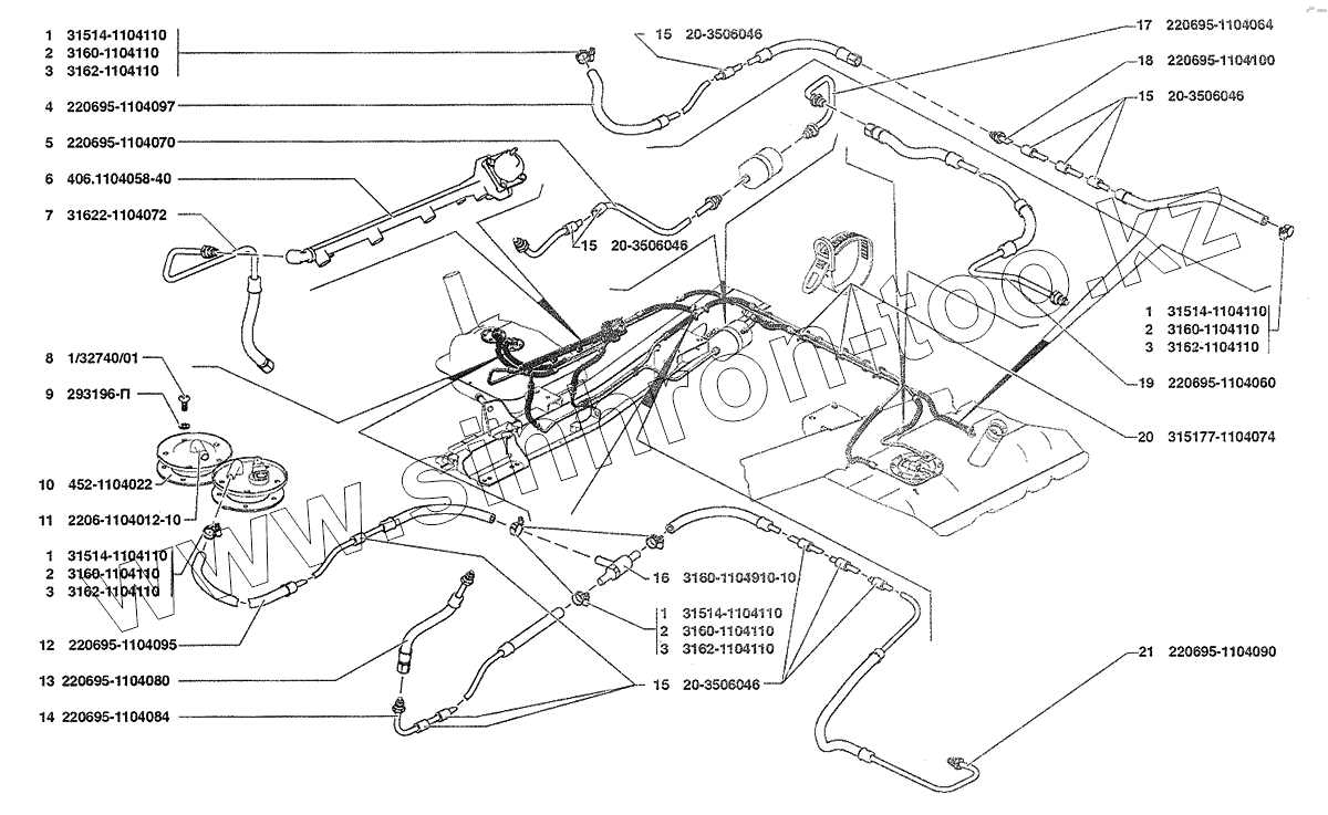 Каталог запасных частей к технике: УАЗ-37419. Трубопроводы топливные