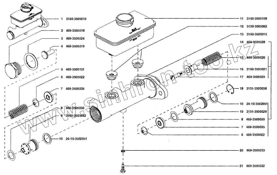Каталог запасных частей к технике: УАЗ-37419. Цилиндр главный тормозов