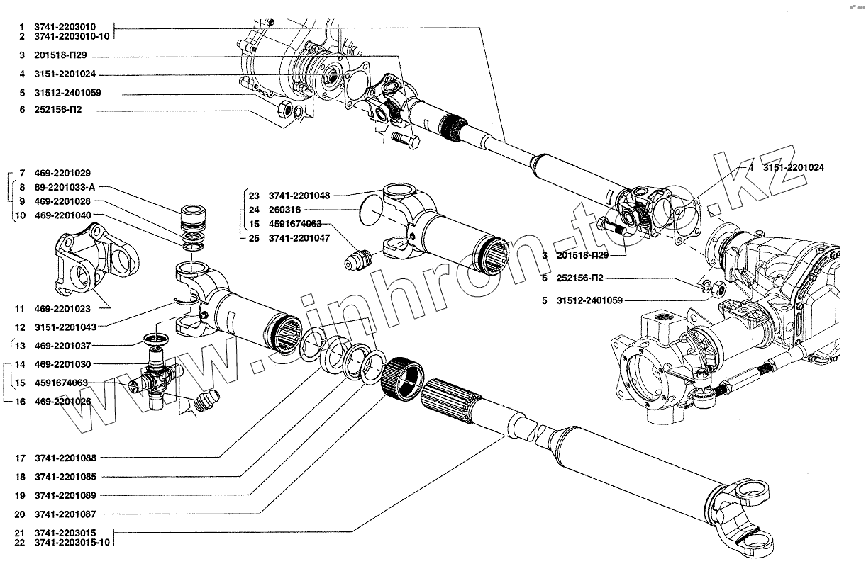 Каталог запасных частей к технике: УАЗ-37419. Вал карданный переднего моста