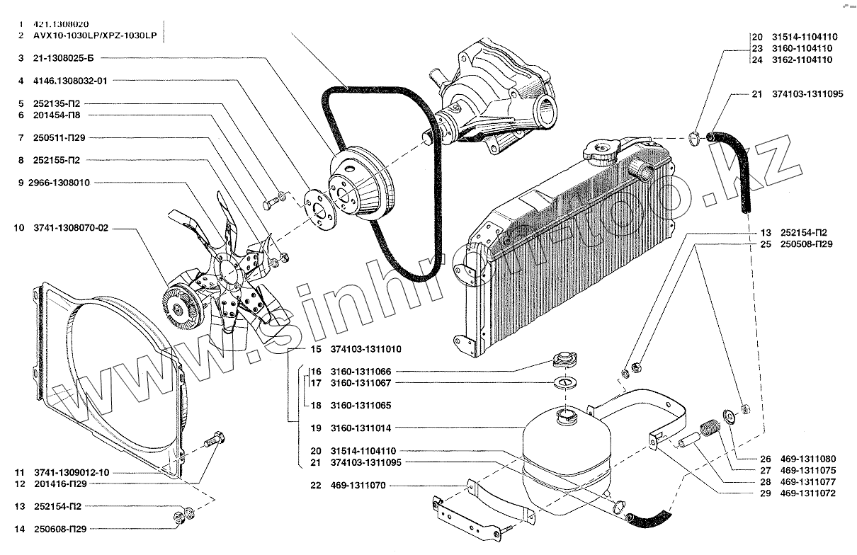 Каталог запасных частей к технике: УАЗ-37419. Вентилятор, бачок расширительный