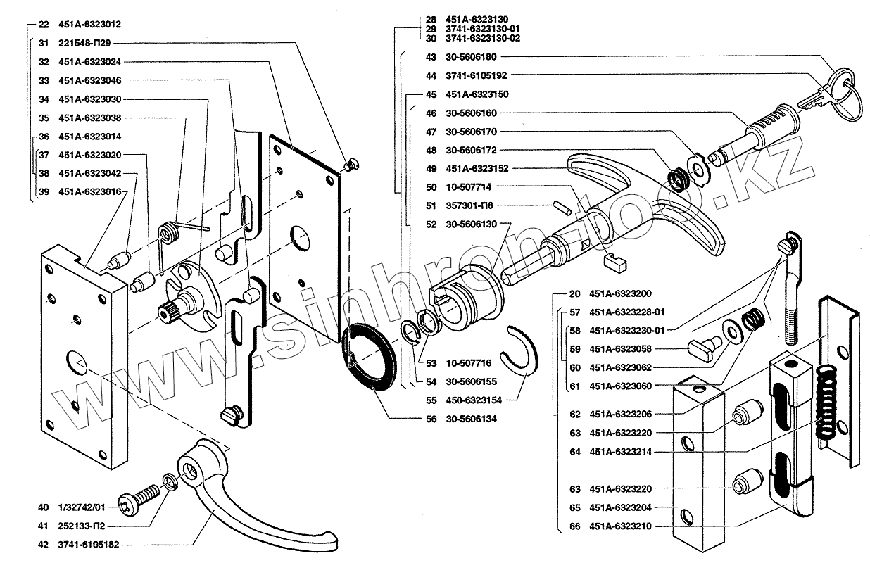 Каталог запасных частей к технике: УАЗ-37419. Замок и ручки двери задка