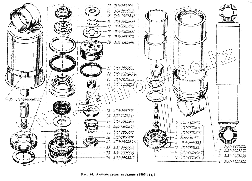 Каталог запасных частей к технике: УАЗ-3741. Амортизаторы передние