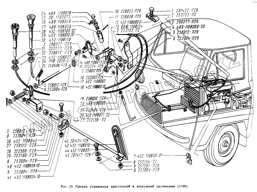 Каталог запасных частей к технике: УАЗ-3741. Привод управления дроссельной и воздушной заслонками