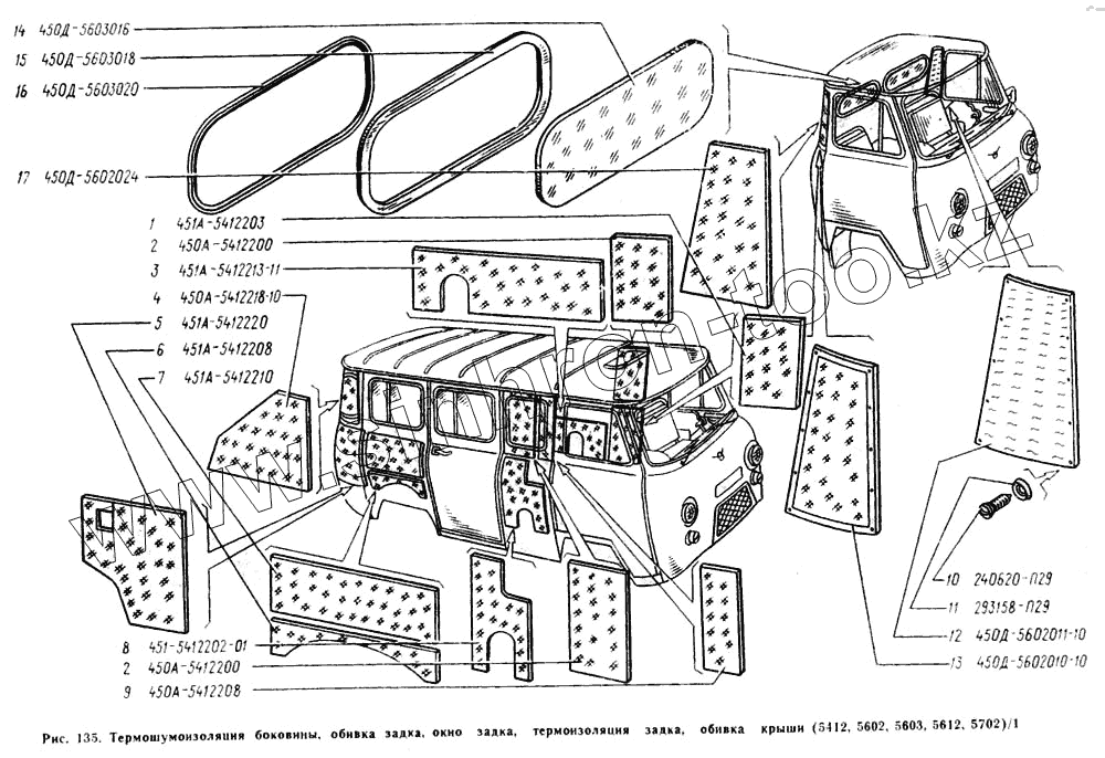 Каталог запасных частей к технике: УАЗ-3741. Термошумоизоляция боковины