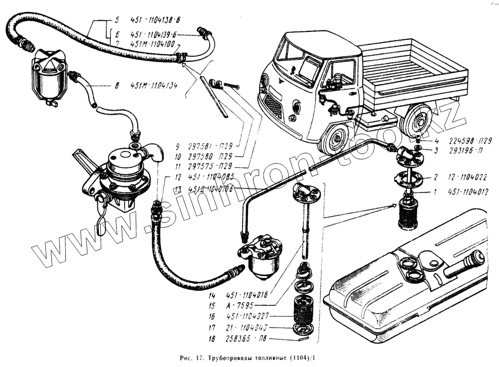 Каталог запасных частей к технике: УАЗ-3741. Трубопроводы топливные