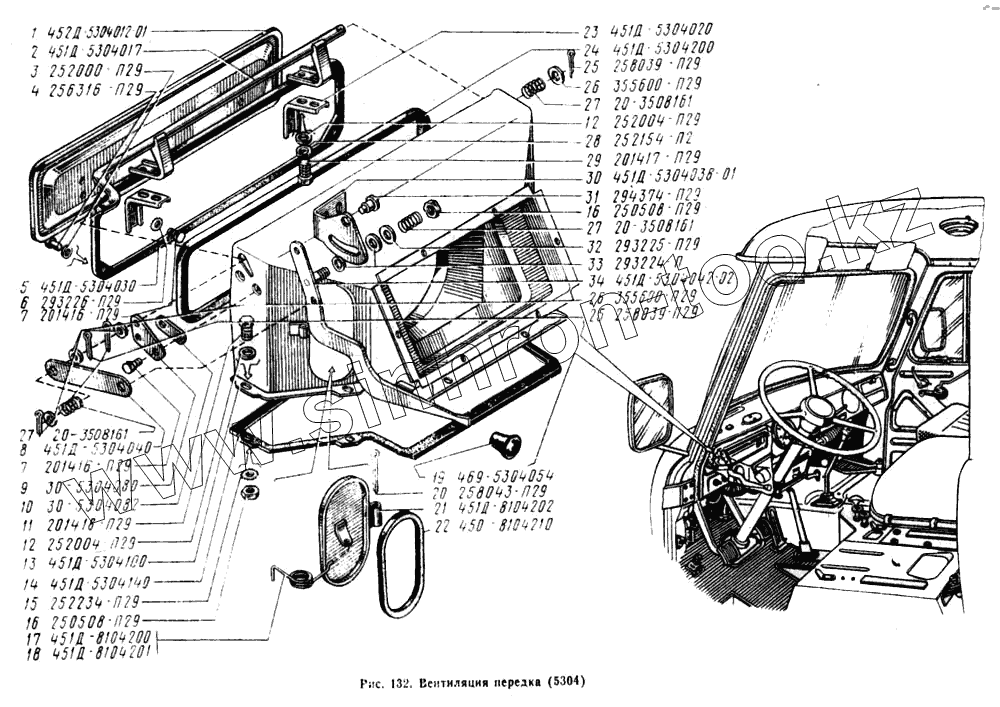 Каталог запасных частей к технике: УАЗ-3741. Вентиляция передка