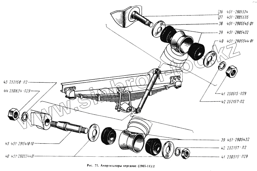 Каталог запасных частей к технике: УАЗ-3962. Амортизаторы передние