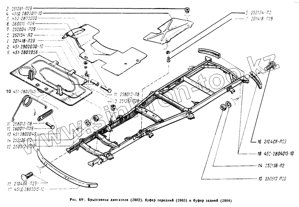 Каталог запасных частей к технике: УАЗ-3962. Брызговики двигателя, буфер передний, буфер задний