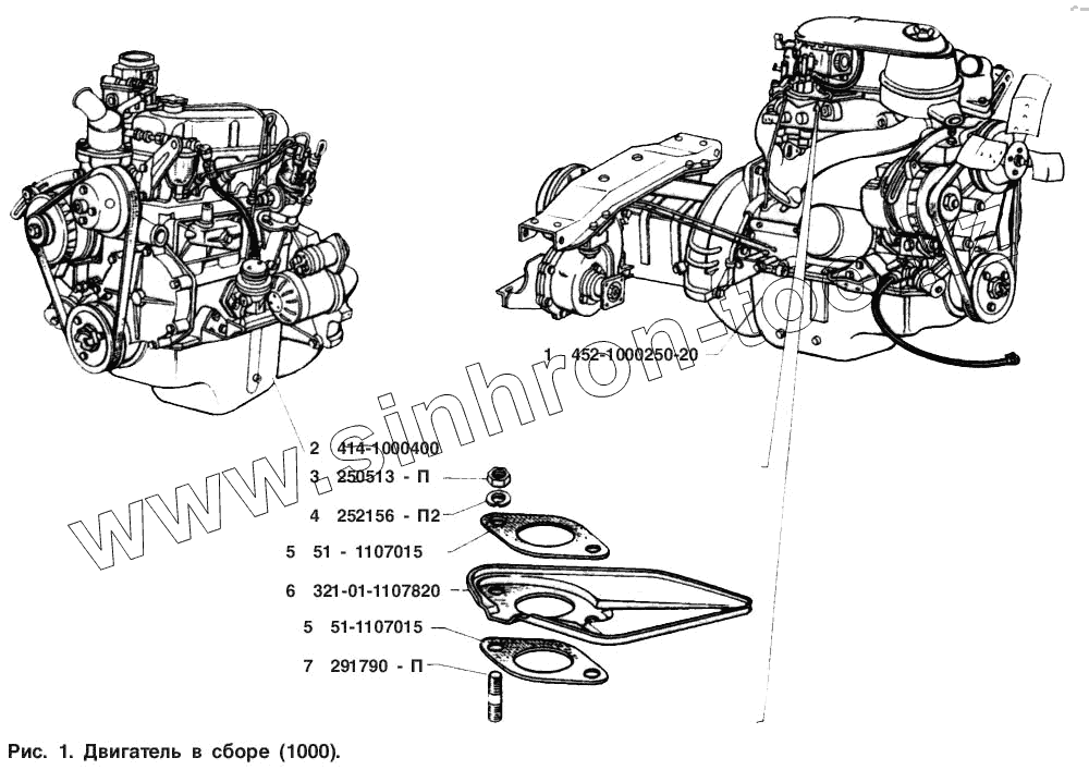 | 1 | 452-1000250-20 | Двигатель в сборе (полностью укомплектованный для установки на шасси) | |