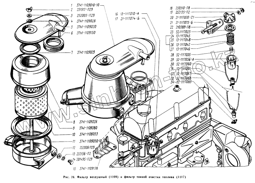 Каталог запасных частей к технике: УАЗ-3962. Фильтр воздушный и фильтр тонкой очистки топлива