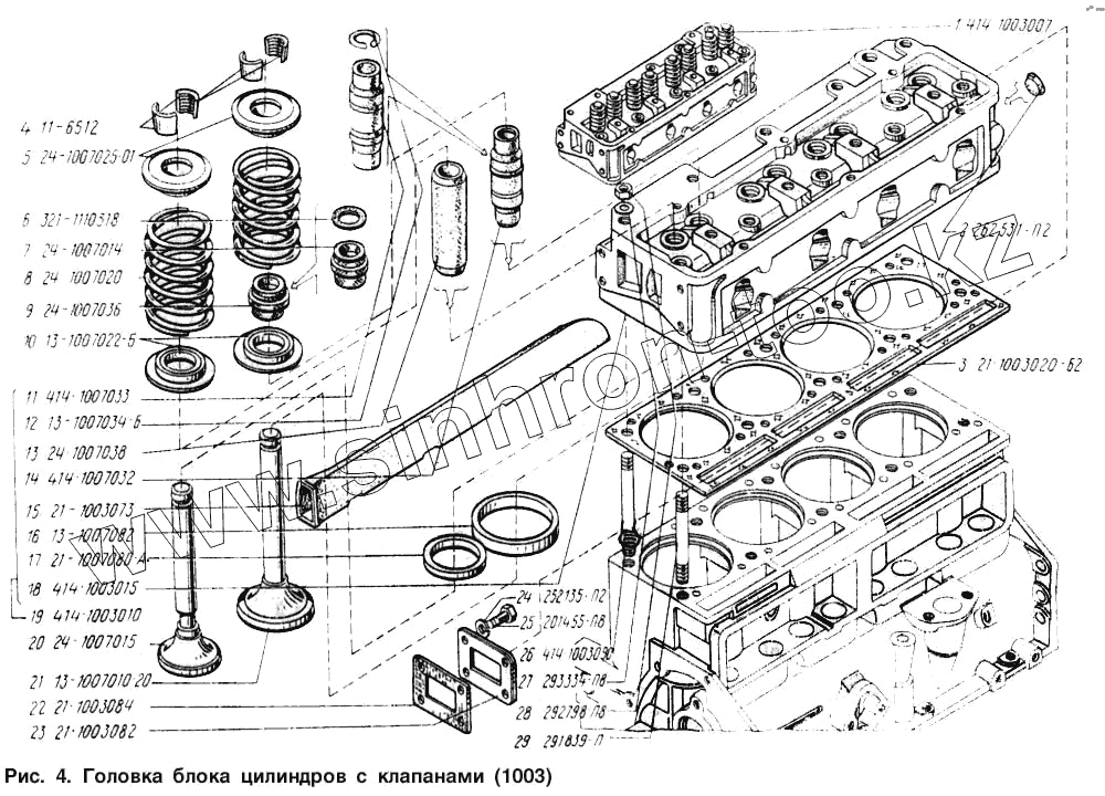 Каталог запасных частей к технике: УАЗ-3962. Головка блока цилиндров с клапанами