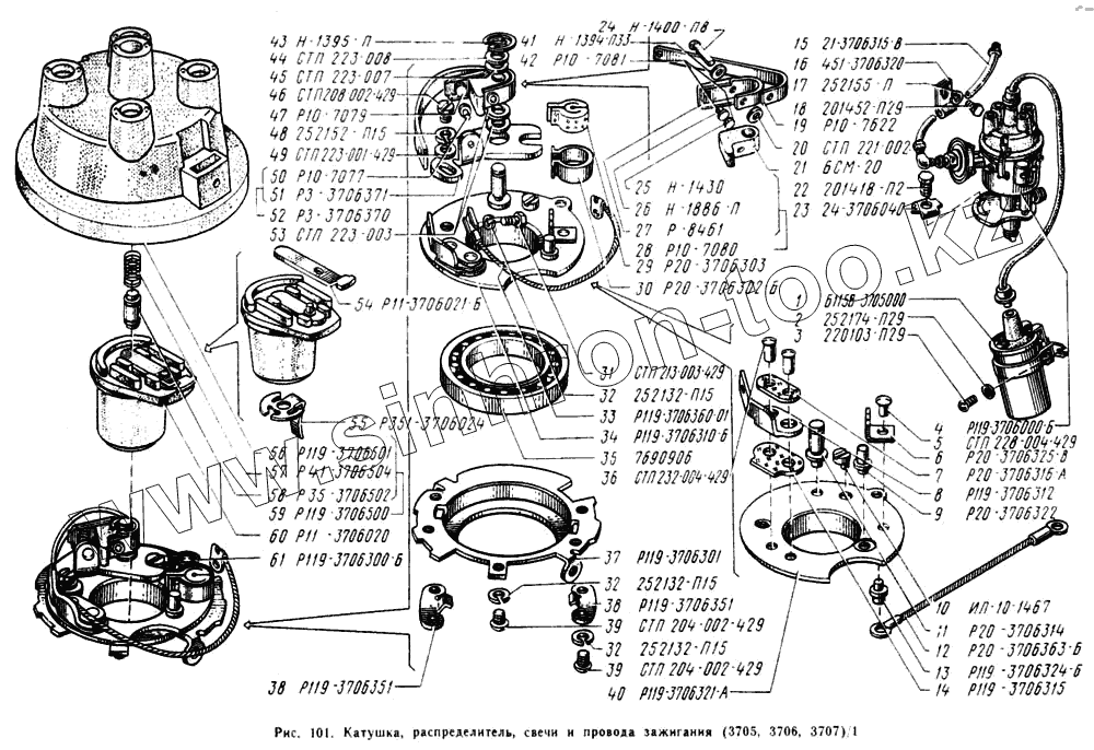 Каталог запасных частей к технике: УАЗ-3962. Катушка зажигания, распределитель зажигания