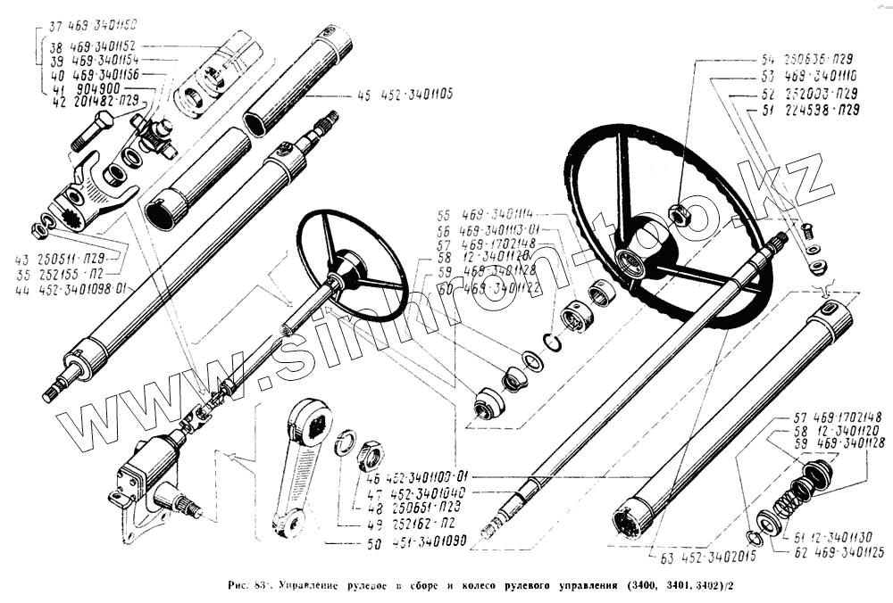 Каталог запасных частей к технике: УАЗ-3962. Колесо рулевого управление