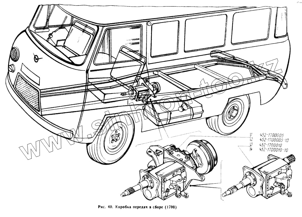 Каталог запасных частей к технике: УАЗ-3962. Коробка передач в сборе